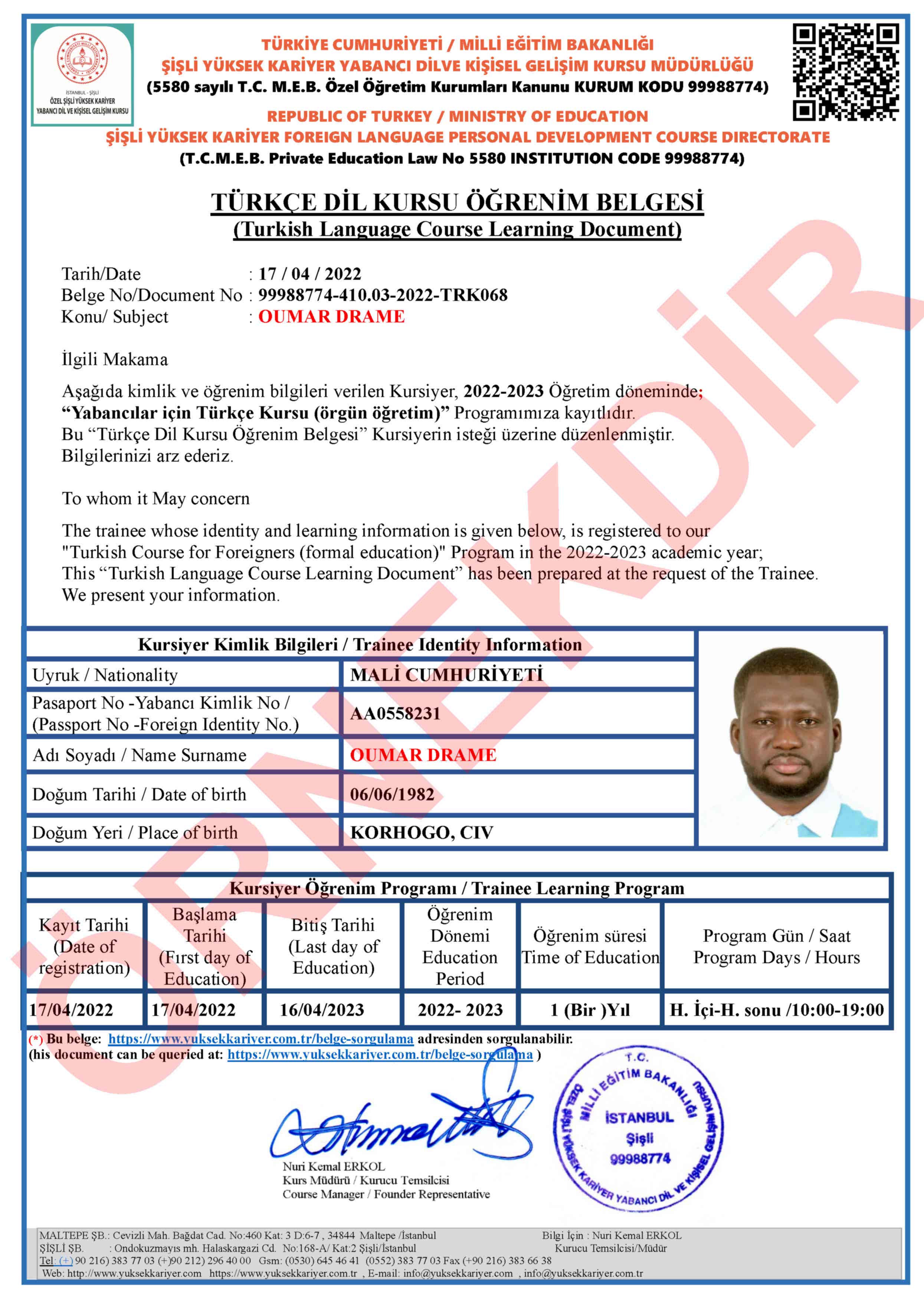 Türkçe Kursu Kayıt ve İkamet İşlemleri